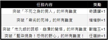 ※上述任務以「單人」或多人遊玩「組隊者」通關時,可獲得完成任務獎勵。