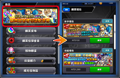 購買方法非常簡單,點擊商店下部的標籤, 移動至下一個畫面後可選擇購買的禮包種類。