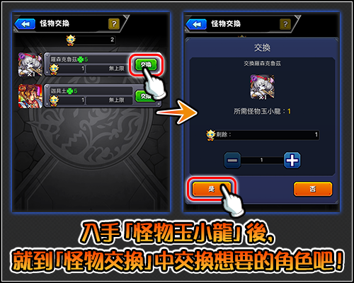 來累積「怪物玉能量」,再將得到的「怪物玉小龍」拿來交換想要的「怪物玉」限定角色吧!