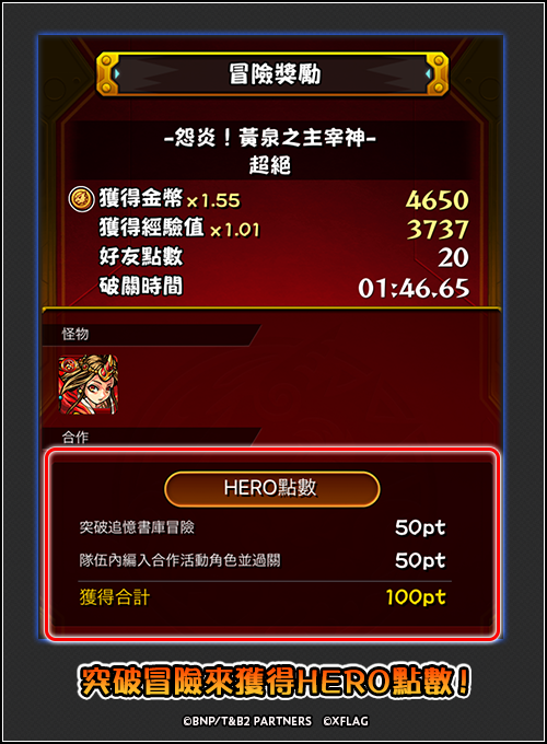 突破對象冒險,即可獲得「分數獎勵」5倍點數的「特別獎勵」!