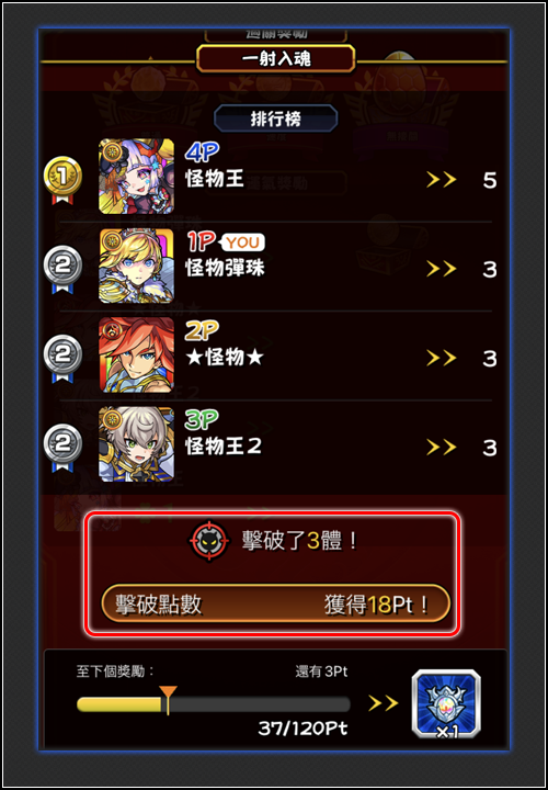 *多人遊玩中,不論組隊者抑或是參加者,皆可獲得所有成員的合計點數。