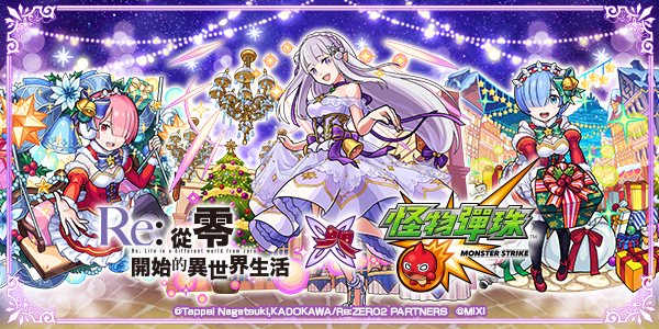 電視動畫《Re:從零開始的異世界生活》與《怪物彈珠》的聖誕節造型合作活動,自12月16日(五)12:00(中午)起期間限定開跑!