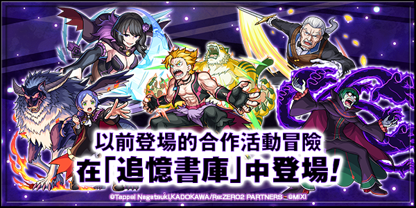轉蛋「Re:從零開始的異世界生活」中,於2021年10月舉辦的電視動畫《Re:從零開始的異世界生活》合作活動中登場的5體合作活動角色將再度登場!