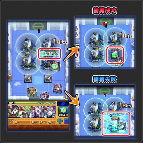 獲得的機率,將由直接攻擊造成的傷害量,轉換成「捕獲能量」顯示!