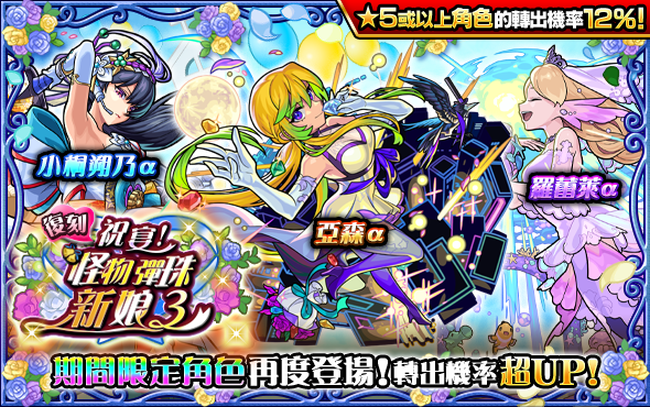 「祝宴!怪物彈珠新娘」、「祝宴!怪物彈珠新娘 2」及「祝宴!怪物彈珠新娘 3」轉蛋活動,將於2024年06月04日中午 12:00期間限定再現!