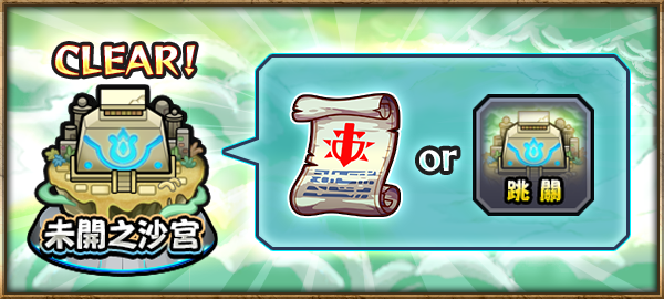 假如能成功挑戰所有「未開之沙宮」關卡,於下一次活動舉行時最舊的關卡將會消失,取而代之將會追加新的關卡讓玩家挑戰!